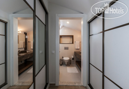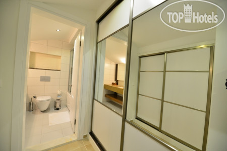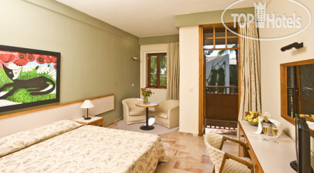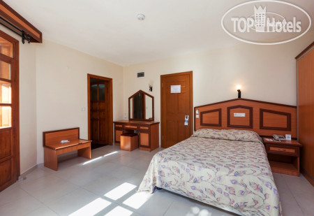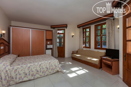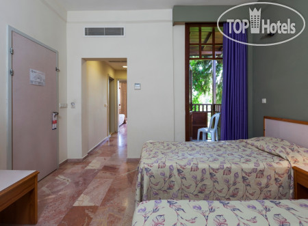 Бронировали семейный двухкомнатный номер в зоне club. Нас заселили в номер на третьем этаже. В нём сделан косметический ремонт, сантехника была hansgrohe исправная, никаких перебоев с подачей или подогревом воды не было, кондиционер староват, конечно, но всё работало. У номера из комнат были два выхода на балконы, других окон не было. Москитных заслонок на балконных дверях нет. Это доставляло хлопот, отслеживали, чтобы шторы были закрыты, когда открывали двери. Звукоизоляция слабая. Дверь открывалась ключом и он немного заедал. Домики уютные, нравился коридор под открытым небом. Вообще надо сказать глаза отдыхали: белые стены, розовый мрамор, дерево, ласточкино гнездо на втором этаже. Деревянные двери, поручни, деревянные лежаки и столики на пляже, было приятно отсутствие горячего пластика вокруг. Никакого шума дороги, просыпались под звуки детских голосов, где-то кричал петух и блеяли бараны.