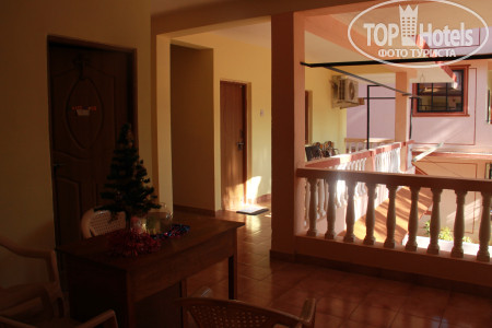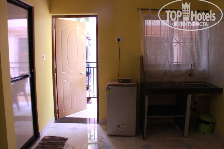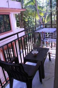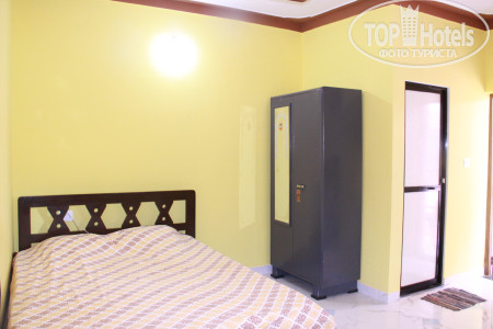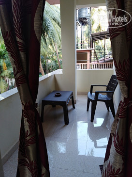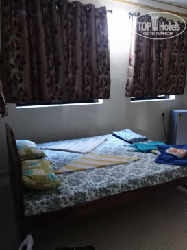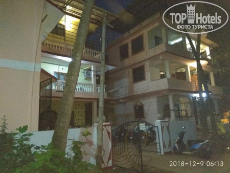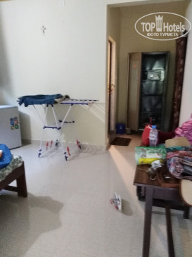 Недорогой отель. Завьраки, кофе , чай с тостом и джем)) чисто. Хороший упоавляющий. У него же был выгодный курс обмена баксов ( везде 69.5. Он менял по 70.) Это на 01.12.2018. Снять байк у него же стоит 300 рупий, сторговался несного дешевле. В номере порадовал железный шкаф и сейф в нем. Вообщем шкаф как сейф)). Запирается надежно. Небольшая кухонька была, холодильник с морозильничком. Все не замызганное новенькое. Кровать двух спалка комфортаная. Туалет душ все, отлично и чисто. Маленький балкончик и вид был на пальмы.. уютно. Кондиционера нет, но есть вентилятор потолочный. Пользовались очень редко, т.к. ночью свежо и хорошо. Контингент русский, а многие зимовщики встречались, которые купили тур, а потом уже искали себе жилье.